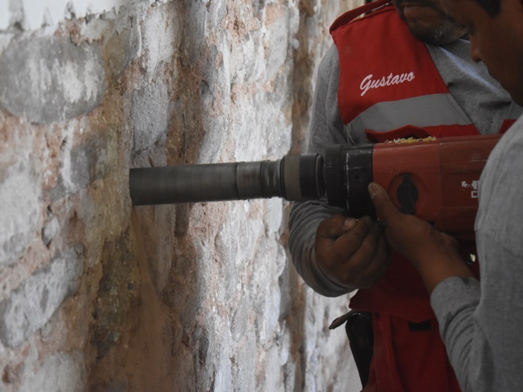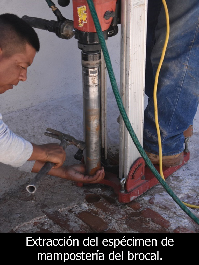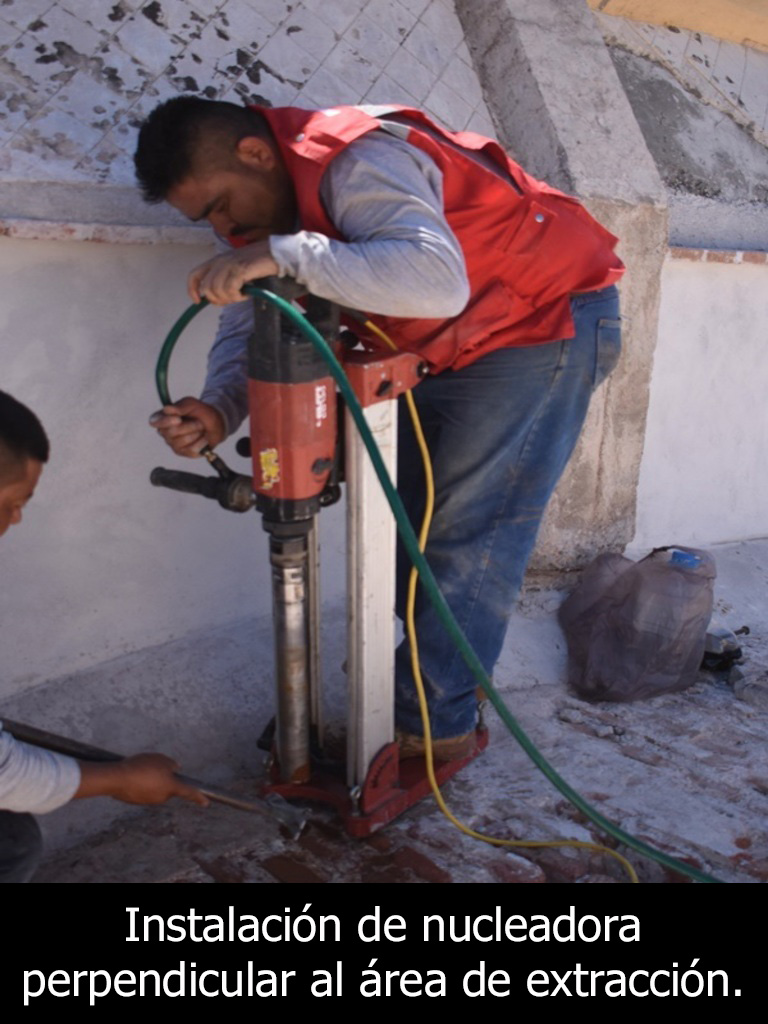 Se realizó la extracción de núcleos de concreto conforme a la norma NMX-C-083-ONNCCE-2014 y la norma NMX-169-ONNCCE. Para establecer la resistencia a compresión de los elementos estructurales de concreto del edificio como, columnas trabes y losas. También se realizó un escaneo del refuerzo de acero presente en las secciones de concreto para determinar armado de varillas longitudinales de refuerzo, diámetro efectivo, características de estribos y su separación.