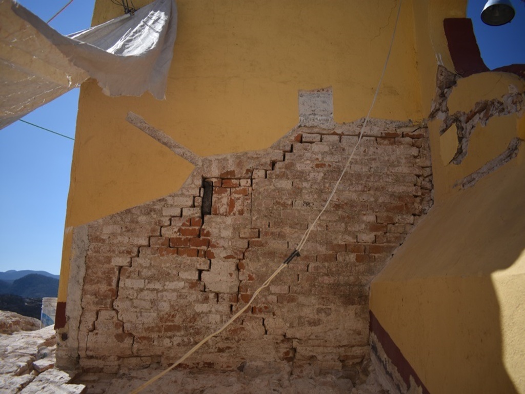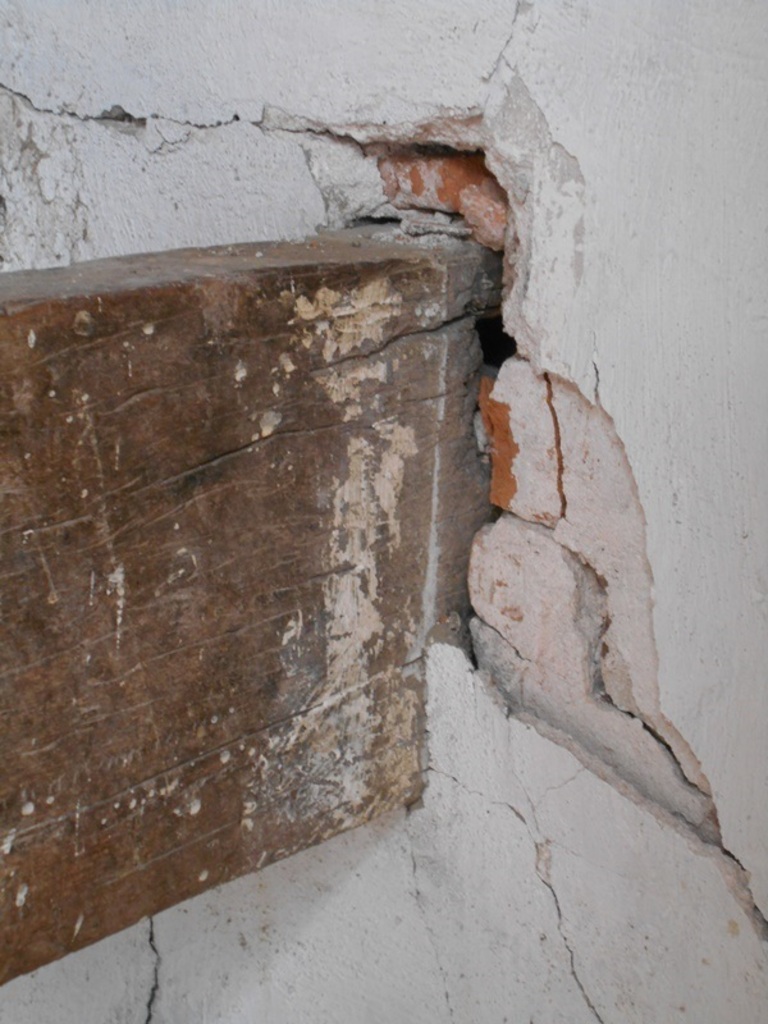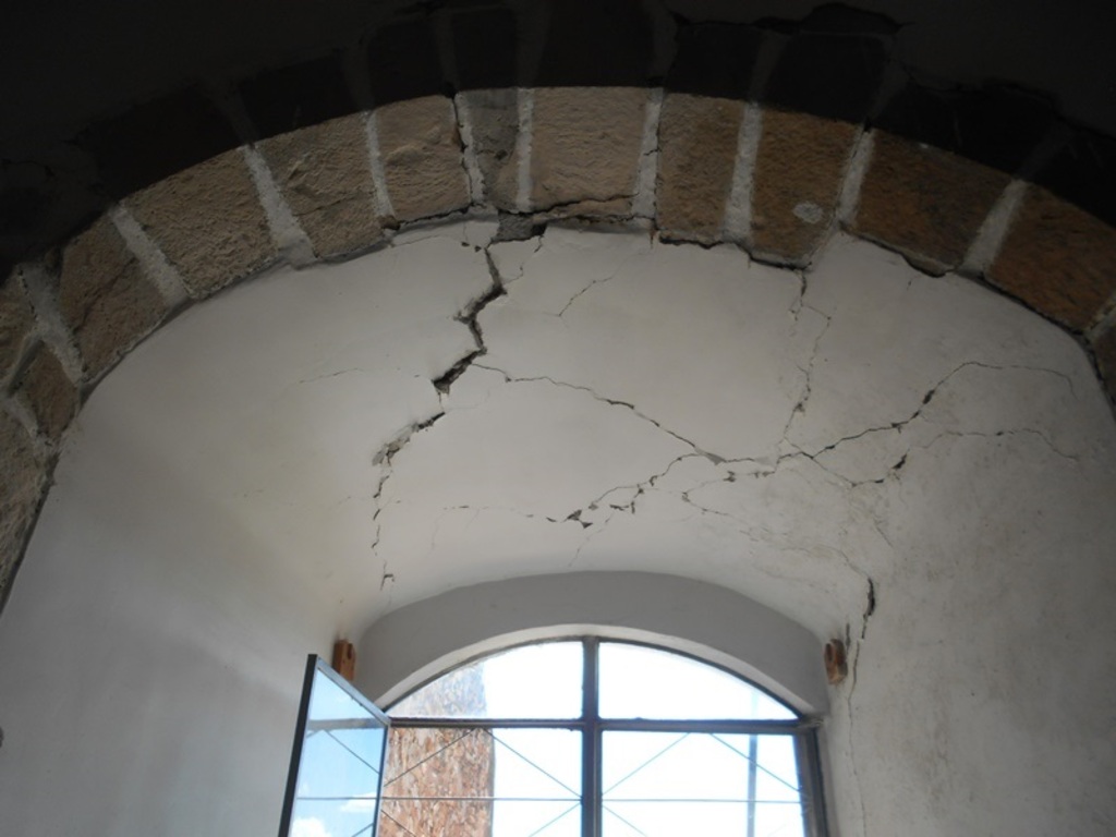 Los acabados como yeso, mortero, etc., no tienen la capacidad estructural de soportar grandes esfuerzos, por lo que en edificios históricos se desprenden de los muros, techos o pisos y nos indican zonas donde se está sobre esforzando la estructura.