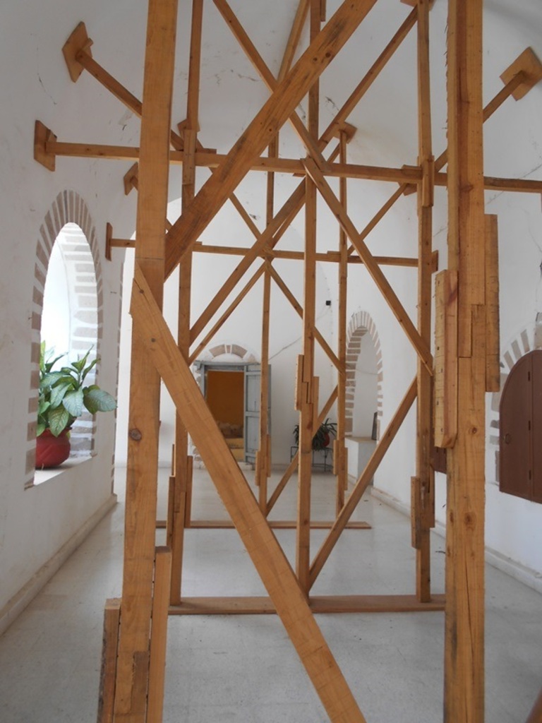 Planos esquemáticos en el eje 6 a los arcos por medio de cuñas metálicas y detalles estructurales de los arcos, así como su comportamiento estático.