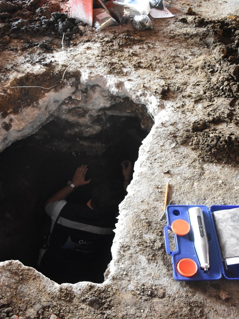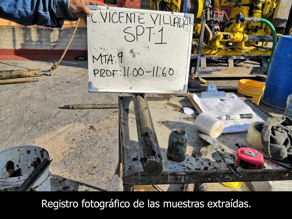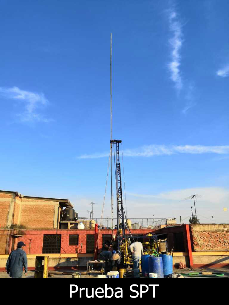 El Sondeo de Penetración Estándar (SPT por sus siglas en Inglés), consiste en la extracción de muestras del subuselo por medio de golpes con un martinete a un tubo partido y registrando el número de golpes, obteniendo información como el perfil estratigráfico, granulometría y nivel del manto freático del subsuelo.